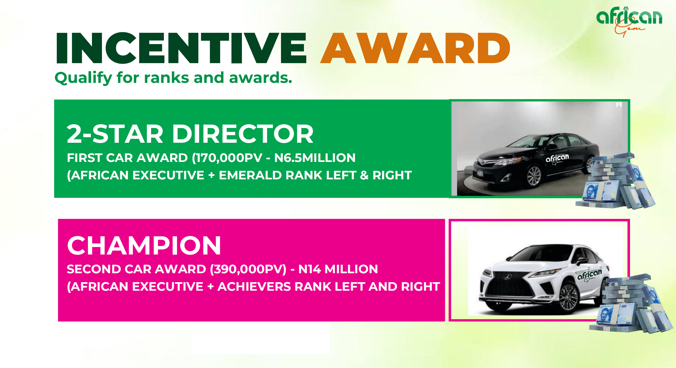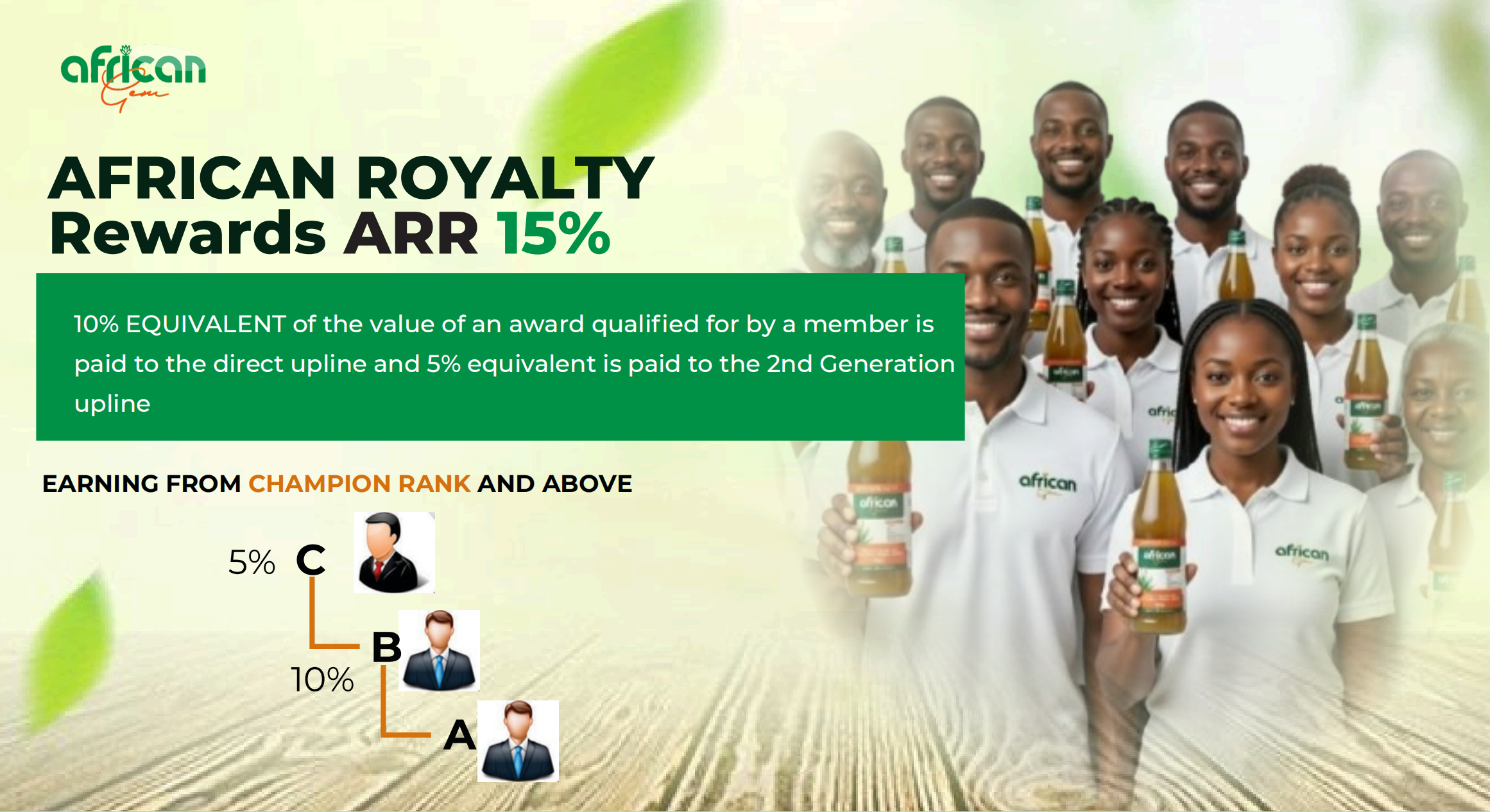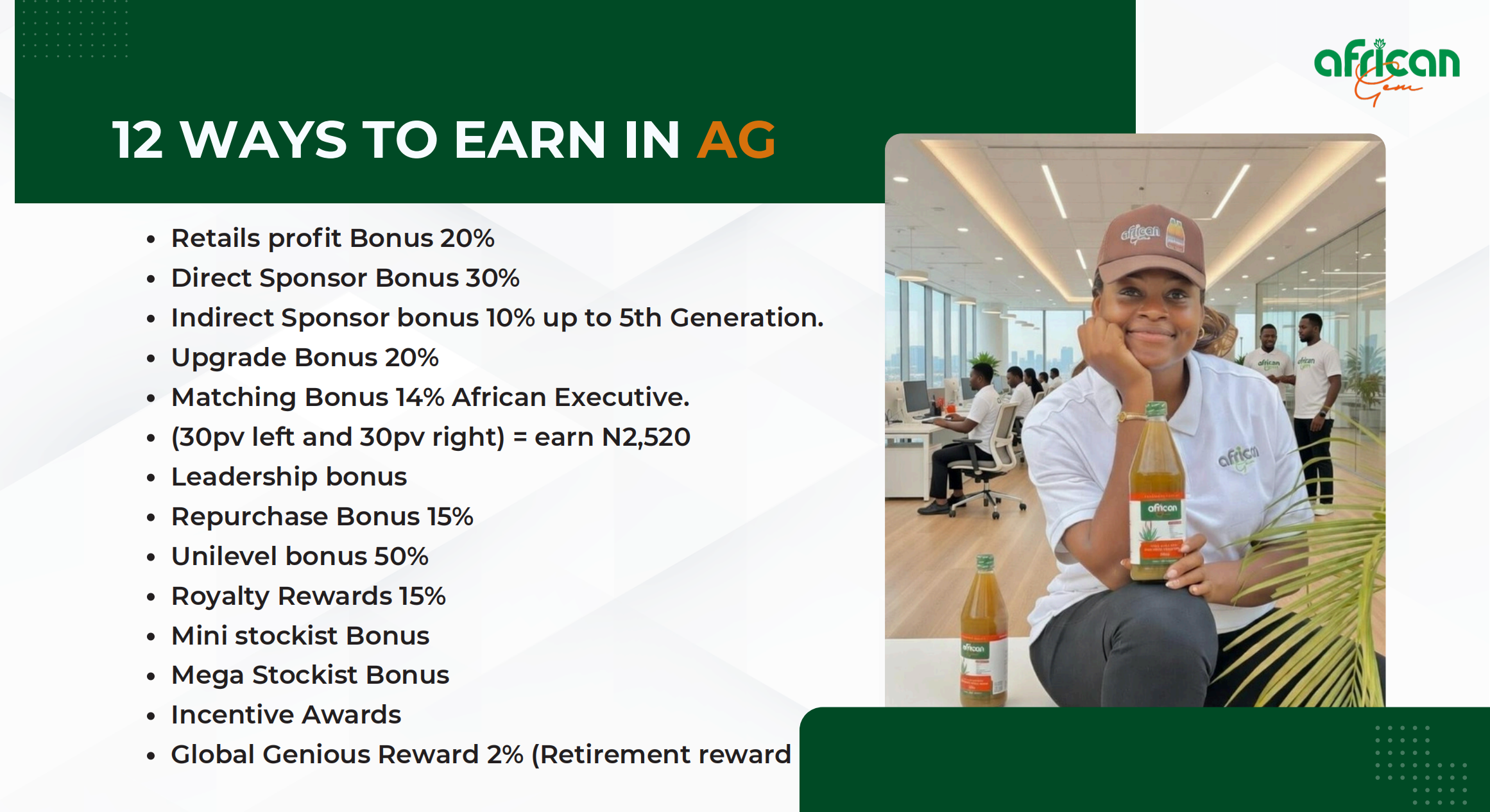 At AFRICAN GEM we have designed a rewarding consumer system that supports your health while helping you build steady income.